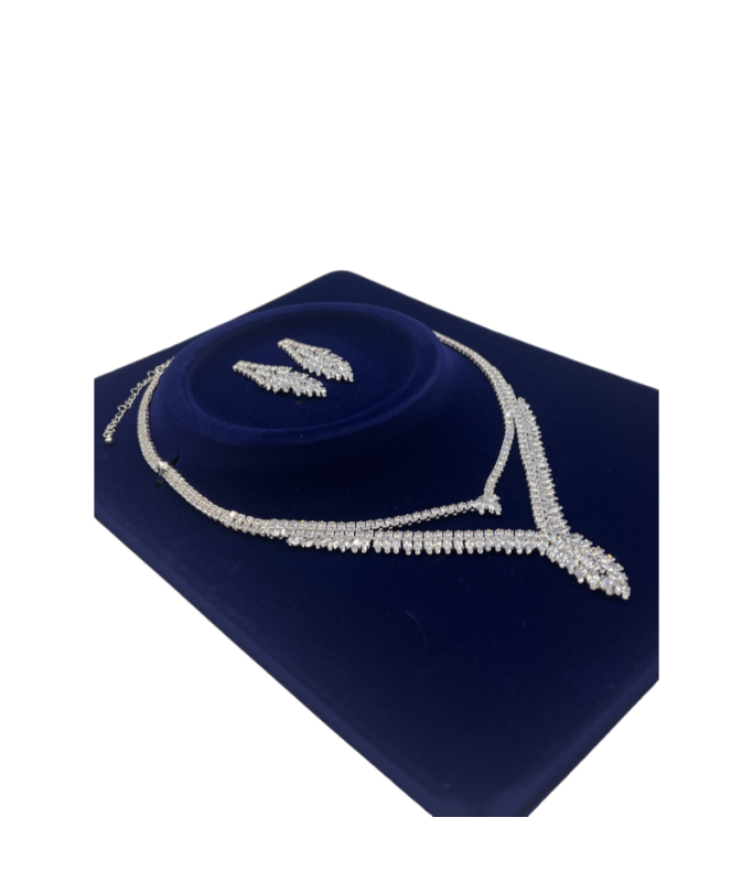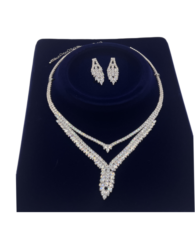 Luxury Rhinestone Necklace Earrings Leaf Set Water Drop Necklace Two-Piece Set