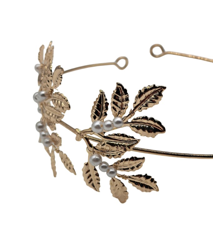 Gold Leaf Pear Wedding Headband,Metal Bridal Headband