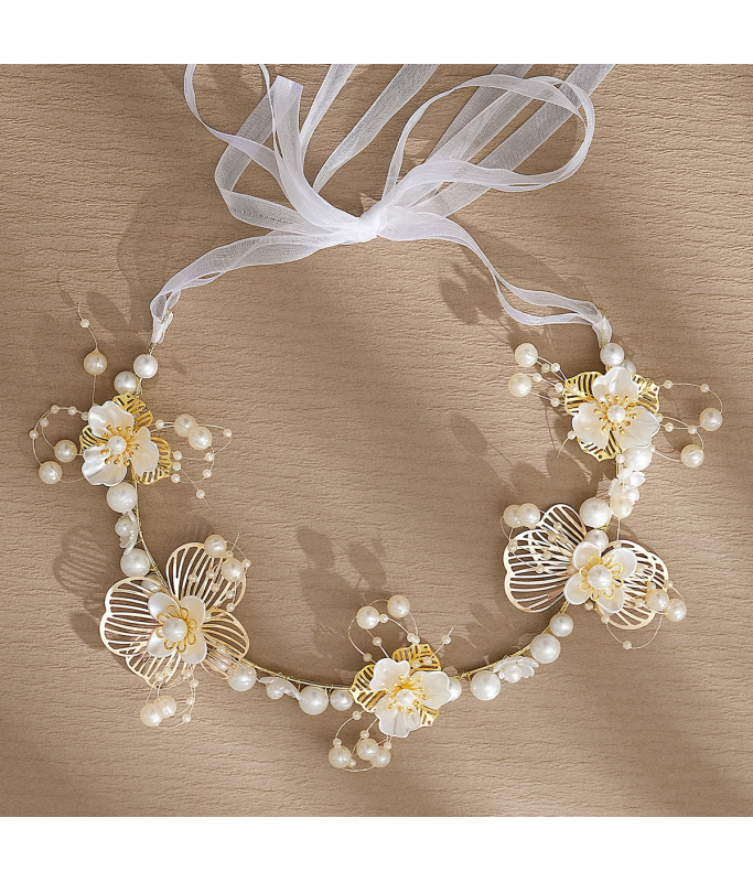 Flower Wreath Braided Headband Flower Girl Pearl Headdress