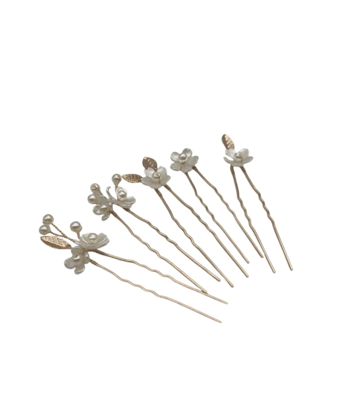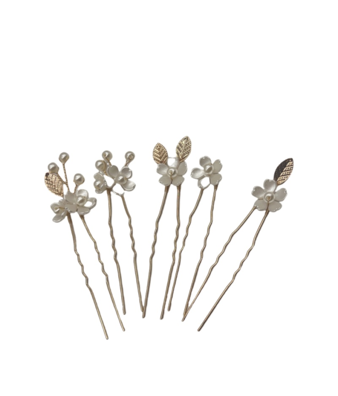 Ancient Style U-shaped Pearl Alloy Hair Fork Golden Leaf Pearl Pin Hairpin Headdress