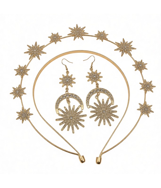 2 Pcs Baroque Headband and Dangle Earrings For Wedding